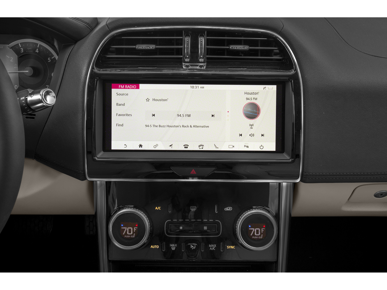 - Radio: Jaguar Sound System -inc: 10" Touch Pro, voice control, Apple CarPlay, Android Auto, InControl apps, dynamic volume control, Bluetooth® connectivity and audio streaming, iPod integration, HD Radio and 2x USB and 12V sockets